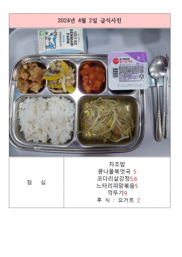 4월 1주 식단표, 원산지 표시제 및 영양표시제 페이지 정보 작성자 관리자 작성일24-04-02 17:44 조회2,290회 댓글0건 관련링크 이전글 다음글 목록 본문 4월 1주 축산물 이력번호 안내4/1 이력번호(돼지) : 72 (110032900420)4/3 이력번호(소) : KOR0021683534424/5 이력번호(소) KOR002162462472655 댓글목록 등록된 댓글이 없습니다. 이전글 다음글 목록